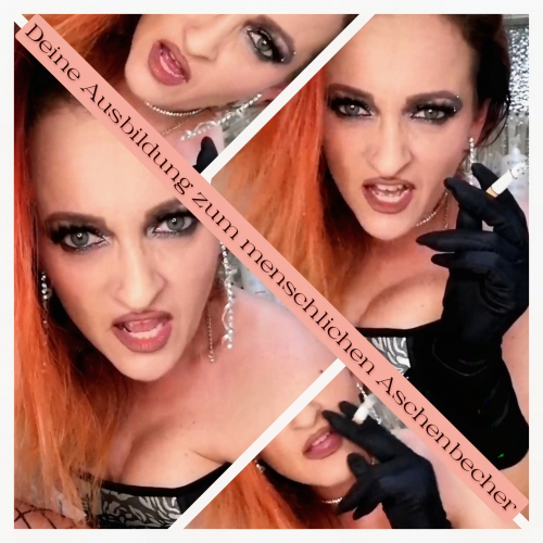 Ab sofort werde ich Dich zu meinem menschlichen Aschenbecher abrichten! Den Aschenbecher neben mir möchte ich nicht beschmutzen, Dein Maul hingegen schon… also schön weit aufmachen! Während ich genüsslich meine Zigarette rauche und den Rauch in Deine Augen puste, hältst Du brav Deine Fresse auf und wartest auf Deinen Einsatz als mein lebender Aschenbecher! Schluck die Asche… aber nicht nur die! Deine skrupellose und sadistische Herrin bringt Dich heute nicht nur an Deine Ekelgrenze, sondern vor allem auch an Deine Schmerzgrenze. Du wirst herhalten und einiges aushalten müssen! Und das tust Du natürlich gerne für mich. Du nimmst für mich alles in Kauf, nicht wahr?! Dafür bekommst Du vielleicht ja einen Dominakuss. Der Anblick Deiner anbetungswürdigen Göttin lässt Dich schwach werden. Trotz extremer Demütigung wirst Du unglaublich geil und tust was ich Dir sage. Du kannst all meinen Schandtaten einfach nicht widerstehen und kommst immer wieder zu mir angekrochen.