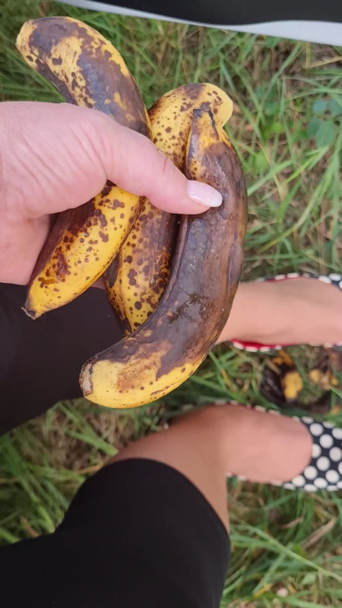 Oh wie ich es liebe Dinge zu ****beiten, zu zertreten, platt zu machen. Wie hier diese überreifen Bananen mit meinen Heels zu schreddern, bis alles kurz und klein ist. Bis die Pampe herausquillt auf allen Seiten. Weißt du Loser was ich mir immer dabei vorstelle? Ich stelle mir vor dass DU unter diesen Heels liegst, dass ich DICH damit ****beite. Genau wie diese Bananen zerquetsche ich dir deine mickrigen Sklaveneier.