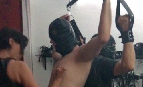 Es gibt so viele kleine geile Schlampen da draussen und die Herrin weiss das sehr wohl zu nutzen. Deswegen hat sie heute auch zwei Sklaven zu sich bestellt. Denn heute wird nach ihren Anweisungen geleckt und ge****, gewichst und gefickt. Also erst einmal die zwei Sklaven am Seilzug aufgehangen und die Ärsche aneinander gerieben. Sollen die beiden Schlampen sich doch miteinander vertraut machen. Währenddessen schwingt die Herrin ein wenig die Peitsche und spielt dabei mit den Brustwarzen. Einer der Sklaven trägt auch noch seinen Keuschheitskäfig und ist entsprechend geil. Das hindert die andere kleine Schlampe aber nicht daran, seine Eier ausgiebig zu lutschen und ihn noch mehr aufzugeilen.