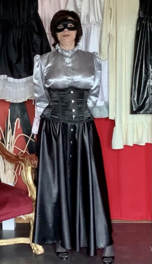 Zur Freude ihrer Zofen ist die Herrin wieder komplett in Satin gekleidet. Eine silbrig glänzende Bluse samt langem durchgeknöpften Rock. So möchte man der Herrin doch nur zu gerne dienen. Deswegen lauscht die Zofe auch gespannt, was die Herrin ihr zu sagen hat und folgt der kleinen Einweisung als ihr neues Hausmädchen. Kurz wird die Arbeitskleidung der Zofe vorgestellt und Benimmregeln erklärt.